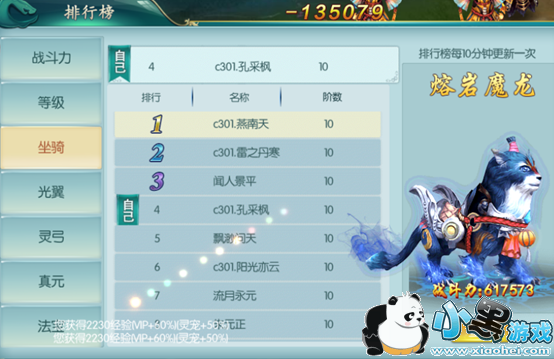 灵弓榜显示全服坐骑战力排行,排行第一的会获得称号“气吞山河”