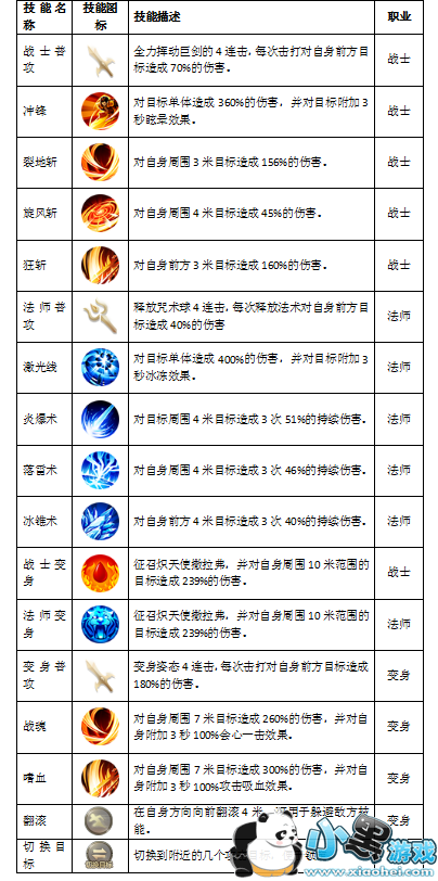2、角色根据战士、法师职业的区分各自拥有自己的职业技能。