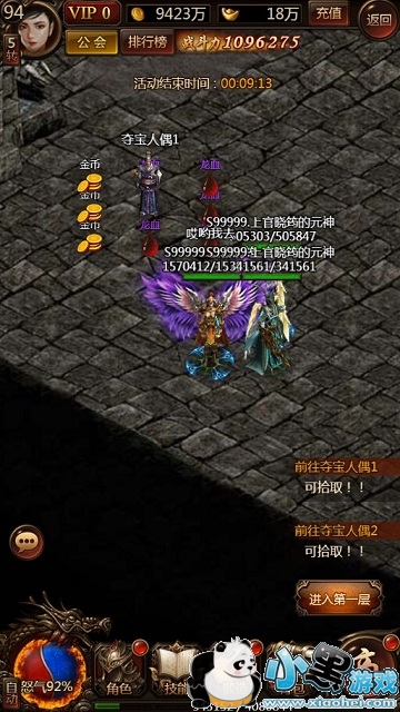 进入相对危险的地宫二层之后,玩家之间可以互相攻击,想要获取珍稀的龙器,先得排除身边的对手。当你确认身边没有敌人的威胁之后,就可以在夺宝人偶身旁捡取龙器等各种道具。每次捡取之后,都会有一段冷却时间,这也保证了人人都有机会捡到宝物。