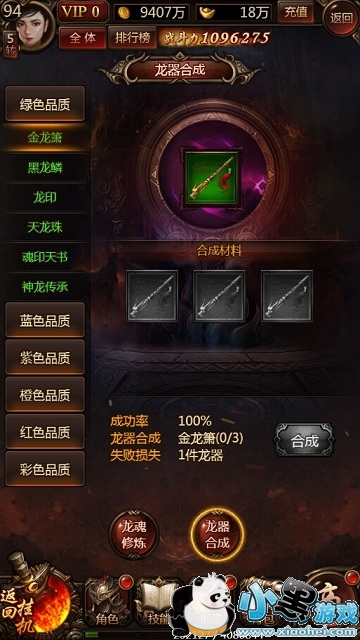 在地下夺宝中获得的龙血与龙器,可以用于在龙魂系统提示自身的实力。龙器共有六种,分别是金龙箫、黑龙鳞、龙印、天龙珠、魂印天书、神龙传承,每三件相同的龙器还可以合成为更高品质。此外,使用龙血可以进行龙魂修炼,进一步增强人物属性哦。
