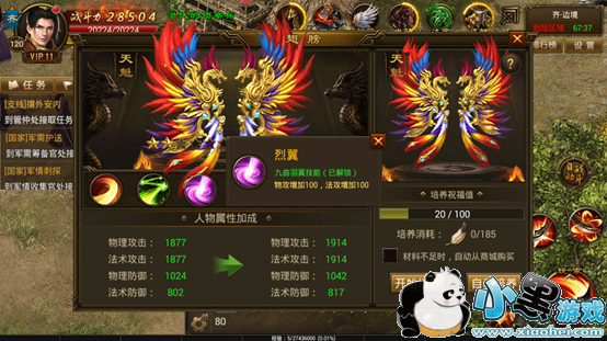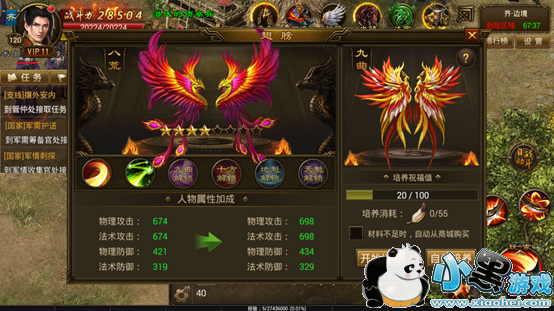 翅膀等阶越高,增加属性越多,外形更霸气,消耗的羽毛越多。