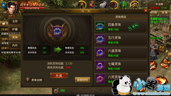 灵珠增加攻击,达到需求数值即可升级。