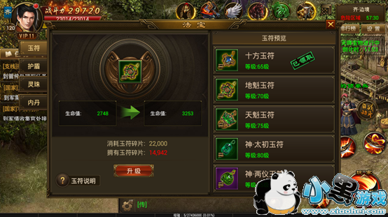 玉符增加生命值,达到需求数量即可升级。