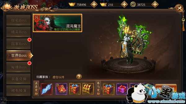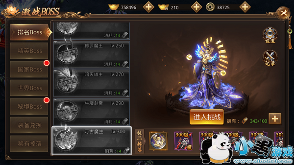 排名BOSS是相对比而言奖励最少的,不过难度也是最低的,在活动场景中不允许PK,所以战斗力一般的玩家可以多多参与,不必担心被高级玩家随手咔嚓。排名BOSS会掉落绑定元宝以及铜币,还有装备的奖励,对BOSS的伤害越高,获取到装备的可能性就越大。