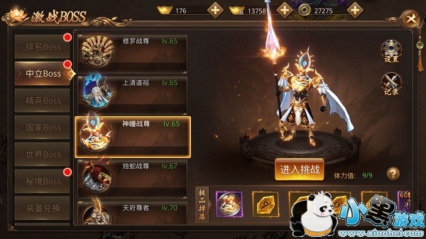 中立BOSS和排名BOSS一样都是玩家在六十级之后开启,这个BOSS的玩法就严苛得多,默认的模式是家族模式,玩家可以自由PK。第一个对BOSS造成伤害的玩家会获得归属权,只有归属者和其组队的队友才能拾取奖励。这个BOSS的奖励是很喜人的,除了绑定元宝铜钱装备等奖励,还会掉落橙装材料,所以尽管竞争激烈,可是依然有很多玩家热衷于此,需要提醒的是战斗力一般的玩家要小心行事,杀这个BOSS的高级玩家有很多。