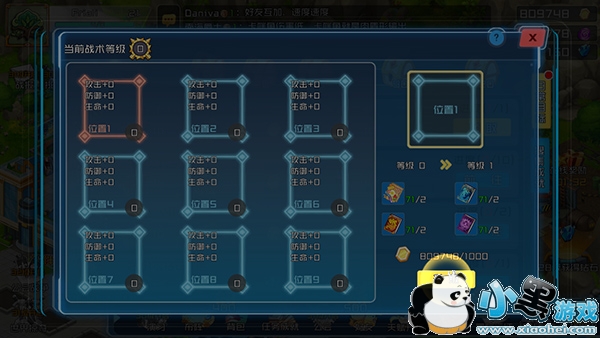 当前战术等级为0级,每个位置只能升级到10级哦!
