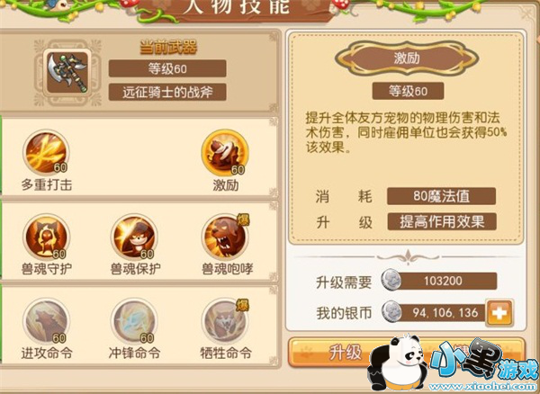 激励:提升全体友方宠物的物理伤害和法术伤害,同时雇佣单位也会获得50%该效果。