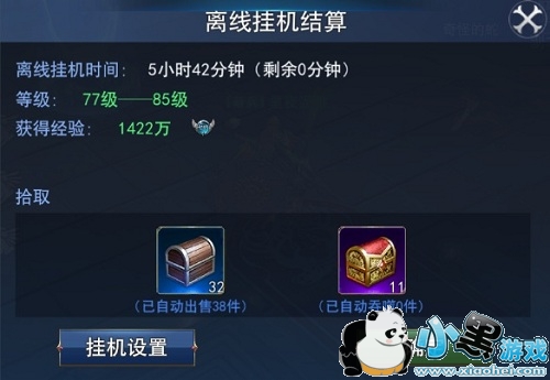 6、多余装备处理:玩家离线期间,人物角色依旧会自动挂机打怪,期间也会自动拾取装备。蓝白色装备会自动出售,而紫色装备可以喂给魔宠或捐给公会。