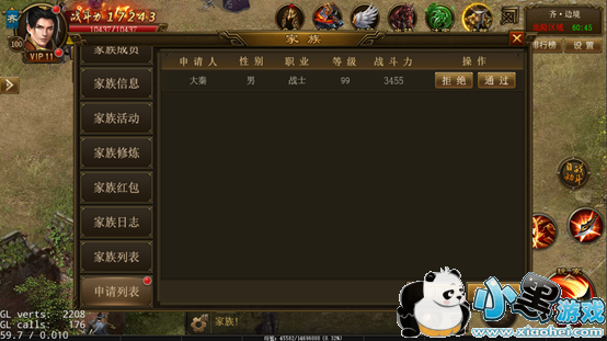 族长、副族长、长老可在申请列表内审核操作加入家族请求