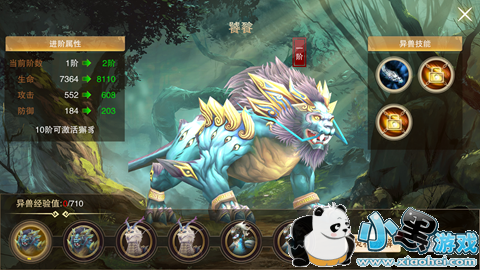 击杀野外BOSS有机会获得灵核,不同品质的灵核分解后可获得一定量的异兽经验,通过消耗异兽经验可以提升异兽的等级,10阶之后更可以消耗解锁道具解锁后续的强力异兽