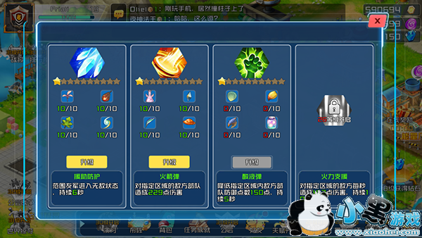除了第一个天赋技能会因为阵营选择而不同外,另外三个天赋技能都是大家共有的:火箭弹,对指定区域的敌方部队造成229点伤害;酸液弹,降低指定区域内敌方部队防御点数150点,持续5秒;火力支援,对指定区域的敌方每秒造成413点伤害,持续10秒。