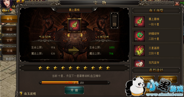 宝物系统由血玉、神盾、官职和龙魂四大板块形成。