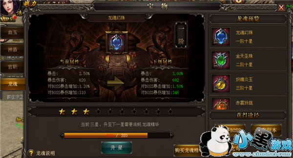 消耗龙魂碎片可以升级龙魂星级获得更高属性