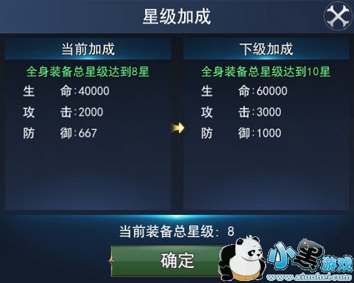 《天使圣域》的星级加成效果以双数作一次递进,简单来说,每逢全身装备达到2/4/6/8/10等等以此类推的总星级,就能激活对应的星级加成效果,为玩家角色提升生命、攻击、防御等效果。