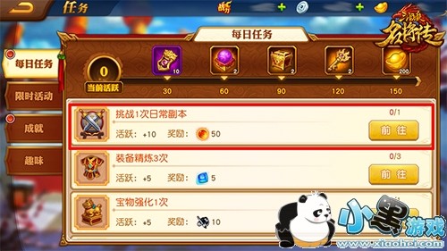 每日任务中挑战1次日常副本,奖励50个突破丹。