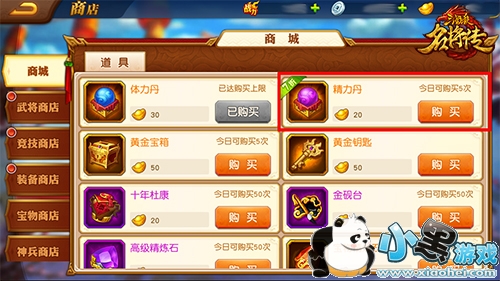 每天可以直接在商城购买一定数量精力丹,可购买的次数与玩家VIP等级挂钩。
