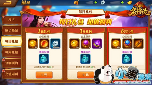 每天小额充值即可领取包含精力丹的礼包。