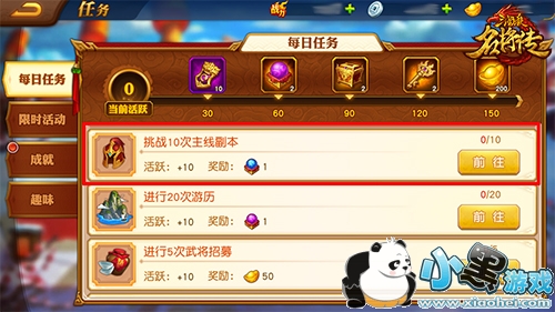 每日任务挑战10次主线副本奖励1个体力丹,每日必拿!