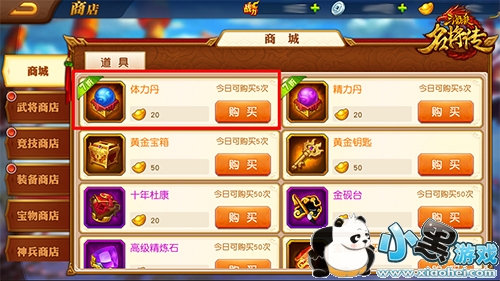 每天可以直接在商城购买一定数量体力丹,可购买的次数与玩家VIP等级挂钩。