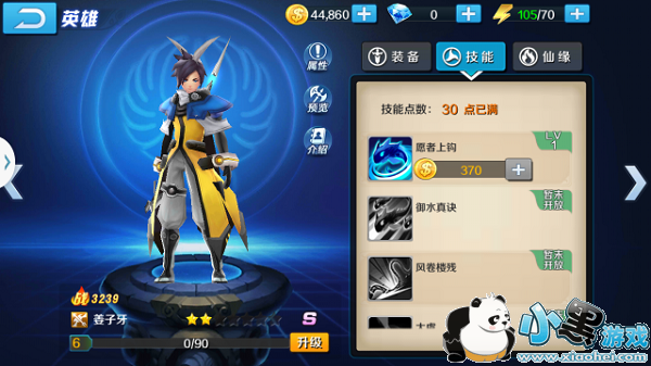 引导结束之后主角升到了6级,并且获得了韦护和姜子牙两个英雄。然后接着开始战役,通过刷图的形式继续升级,打完前三章的战役可以升到13级。在这过程中需要到你英雄界面把英雄的技能点点到最高,点高英雄的技能点可以让英雄战斗力更强,在刷本的过程中效率会更高一点。特别注意的是,技能点不足的情况下,优先点满姜子牙的第一个技能,不然打断几率会很低。韦护的第一个技能暂时不用升,一开始一定可以100%打断,十分给力。