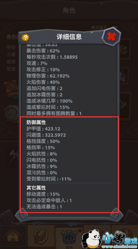 在角色属性中,除去基本属性与攻击属性,还有一块是防御属性与其他属性的展现。