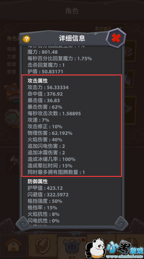 勇士们可在角色页面左侧看到自己的各种基础属性,点击角色属性旁边的感叹号,即可打开自己的详细属性界面啦!