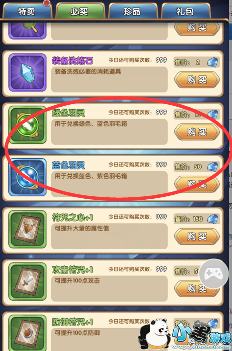 3、商城。在日常的商城中有一个必买的选项,里面可以每天买999个绿色羽灵 价格是10钻石一个,蓝色的羽灵是50钻石一个。 但是不会有人都买满的,不过如果是要冲翅膀的排行榜,但是特价的材料都没有了,又差一些羽毛的话,就来这里吧。 不然排名被人超过就有点惨了。