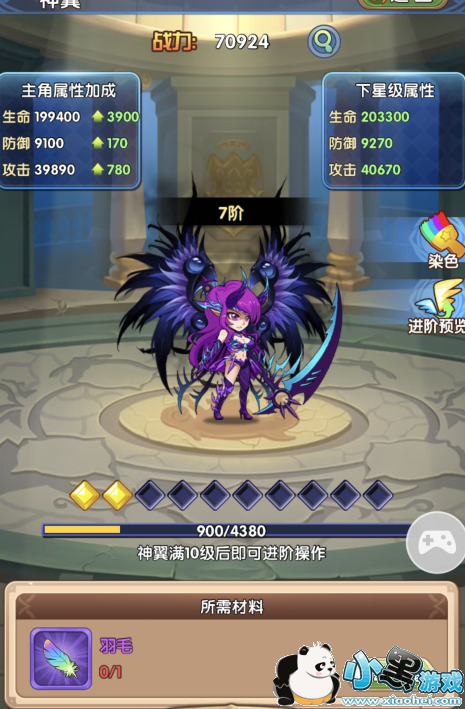 神翼每阶都需要10级满格才可以进阶,而这10级的经验每级要的经验也是不同的,其实这个有点看运气啦,有的时候会产生暴击的效果,就事半功倍了。