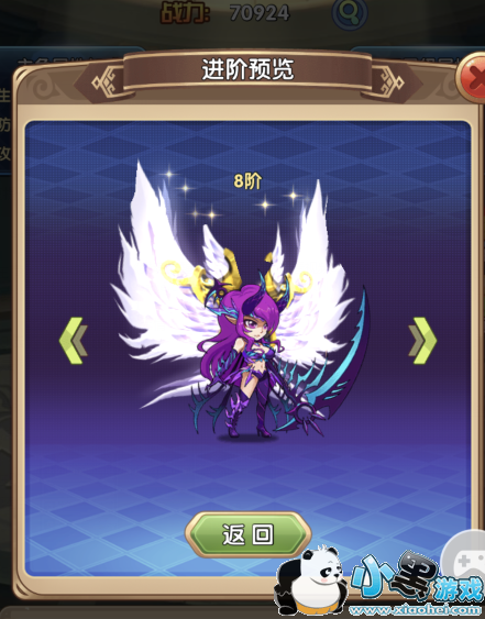 我们可以点击进阶预览,看到不同进阶的效果,貌似到了10阶以后就都有一个效果了,不过小宝典可是个萌妹子哦。最喜欢的还是8阶的效果呢~你喜欢哪个?而且这个神翼在达到一定等级就可以染色了哇。