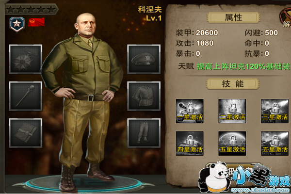 S国S级指挥官科涅夫:自带技能,120%装甲,初始属性,闪避500;1星+闪避和护甲,4星抗暴,此外的三个技能都增加护甲,要用一个词称呼科涅夫,就是“铁壁”!