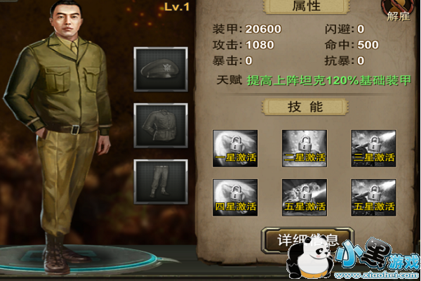 C国S级指挥官 英元帅:自带技能,120%装甲,初始属性,命中500;4星5星分别是 单体暴击 + 基础攻击500%,毫无疑问这两个技能是完美搭配;