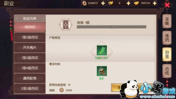 采集到的矿通过冶金,可以制作出各种不同的产物,包括符印、配饰、天残片等。在冶金的过程中,我们的冶金技能等级会升级,等级越高,能够制作出的东西就越丰富。