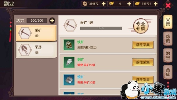 采集炼药和采矿冶金的原理差不多,玩家同样可以消耗活力来采集不同的药,采集等级越高,可以采集到的药就更丰富。