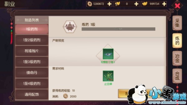 采集到的药可以进行炼药,炼药的过成功会提升自己的炼药技能,等级越高能做出来的药类就越多。