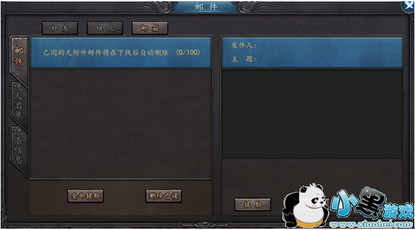 玩家可以收到系统发放的邮件,也可以相互之间发放没有附件的邮件,被其它玩家击败后,可以通过仇人名单追踪仇人。