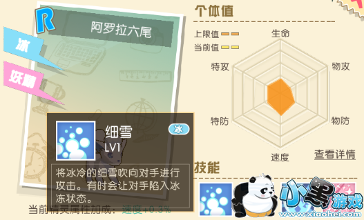 细雪:将冰冷的细雪吹向对手进行攻击。有时会让对手陷入冰冻状态。