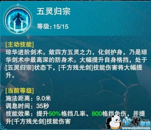 分析:满级后格挡几率和免伤较为乐观,此技能最大的亮点在于提升大招伤害。所以诸位在使用大招之前记得开启此技能。但是此技能的等级提升,对提升大招伤害效果不大。只要处于五灵归宗状态下,无论是1级五灵归宗还是满级五灵归宗,大招伤害均可以获得有效提高。所以PVP与PVE均不推荐先加。