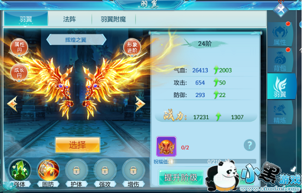 出门行走没有炫酷羽翼可不行,羽翼的升阶不但能提升战力,还能改变形象。