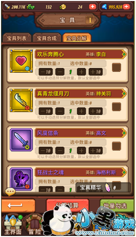 宝具强化类似英雄进阶,宝具强化之后可增加战力、攻击、防御等属性,还可随机增加英雄火、土、水、光属性的一项或几项。宝具强化前期只消耗低级强化材料,中期消耗低级进阶材料和同名宝具,后期消耗低级强化材料、同名宝具以及高阶强化材料。其中低级强化材料来自宝具分解,同名宝具来源于宝具召唤,高级强化材料来源于游戏内的各个商店和玩法。想要快速养成宝具,宝具召唤是必经之路。