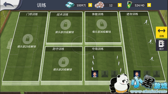 玩家等级达到15级时解锁在俱乐部建设中的训练场场景。在训练场中,玩家可以通过点击不同的区块对球员进行训练,训练完成后可以获得技能卡,装备到球员技能栏中增加球员属性。训练过程中有几率出现特殊事件,获得金币。