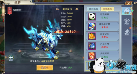 幻化界面可查看活动坐骑样式和各阶不同坐骑样式