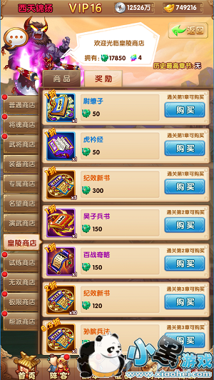 当玩家达到一定的通关成就后,可领取相应的奖励。如通关皇陵探宝第一章,可以领取《尉缭子》、《虎衿经》。