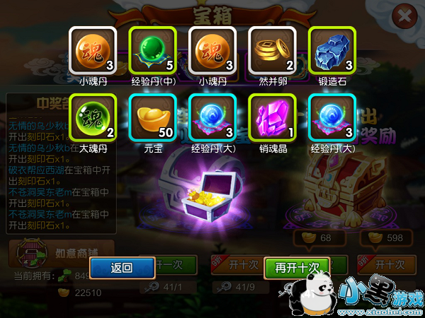 开宝箱,又分为普通宝箱和精致宝箱。分别需要普通钥匙和精致钥匙。精致宝箱也可以用元宝开,不过不建议大家这么做。普通宝箱,最高可开出128元宝,十连必出元宝,单次有几率开出元宝。精致宝箱也一样哟,不过,精致宝箱最高可开出2888元宝呢。