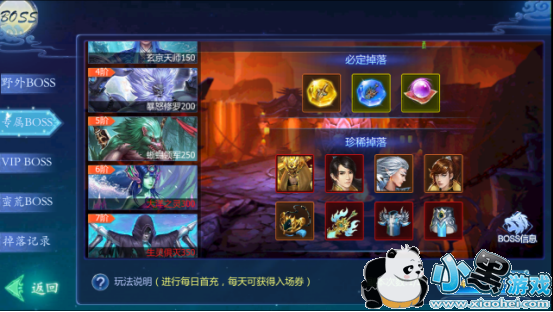 专属boss顾名思义只限于单人,每次进入需要消耗挑战卷,通过每日首冲可获得挑战券,或者直接消耗仙玉进入(优先绑定仙玉),挑战后不增加疲劳值。