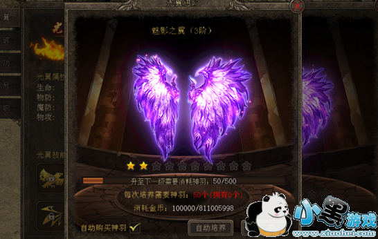 光翼可以通过培养来升阶,培养需要消耗圣羽,圣羽可以通过日常任务或者一些活动获得,玩家也可选择消耗金币代替圣羽。