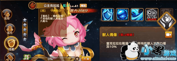 克拉拉为传说卡排,角色技能为【战吼】,当初牌后就马上召唤出一个兽人角色,因此出牌一只相当于两只角色在场上,这会让整个局面有较为优势,右边区块为装备提升后的技能,当紫2后克拉拉使场上所有兽人总族攻击力提升10%。