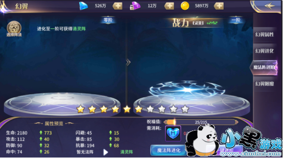 魔法阵进阶需要消耗一定的魔法之心,进条满时升至1星,一共10星,当达到10星在进化时就会进入下一阶,魔法阵的形象会有所变化。