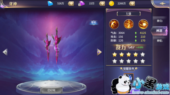 提升觉醒时使用的武器属性加成,每升一星需要消耗6个神器能量,一共10星。