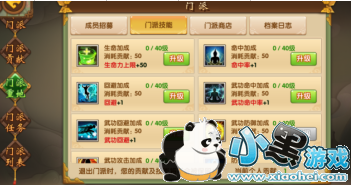 门派技能:按门派等级开放可学习技能,多给门派做贡献,也是给自己加属性哦