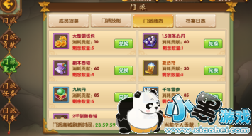 门派商店:按门派等级开放可购买的物品,多给门派做贡献,还怕自己没有宝贝嘛